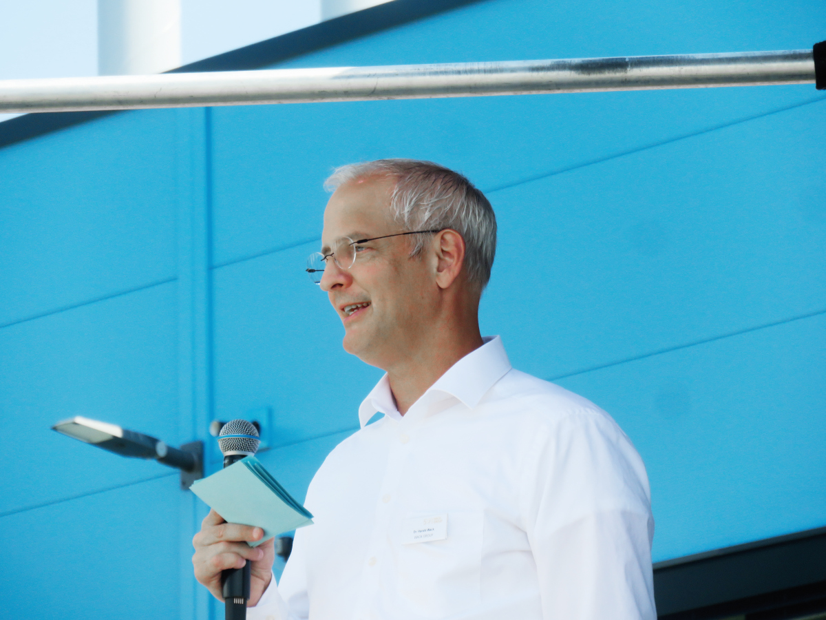 Ludwig Weyand, Bürgermeister von Baar-Ebenhausen, überbrachte die Grußworte der Gemeinde, für die die Ansiedlung ein Gewinn sowie ein Vorzeigeobjekt für die nachhaltige Zukunft ist. Er überreichte anlässlich der Feier eine Zeitkapsel.