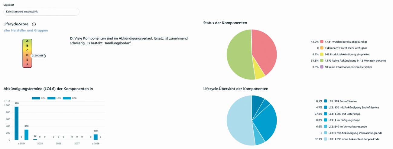 Allein die Erfassung der Bauteile schafft jedoch nur eine Inventarliste. Den entscheidenden Mehrwert bietet der Abgleich mit den Lifecycle-Daten der Hersteller. Diese liefern Informationen über: