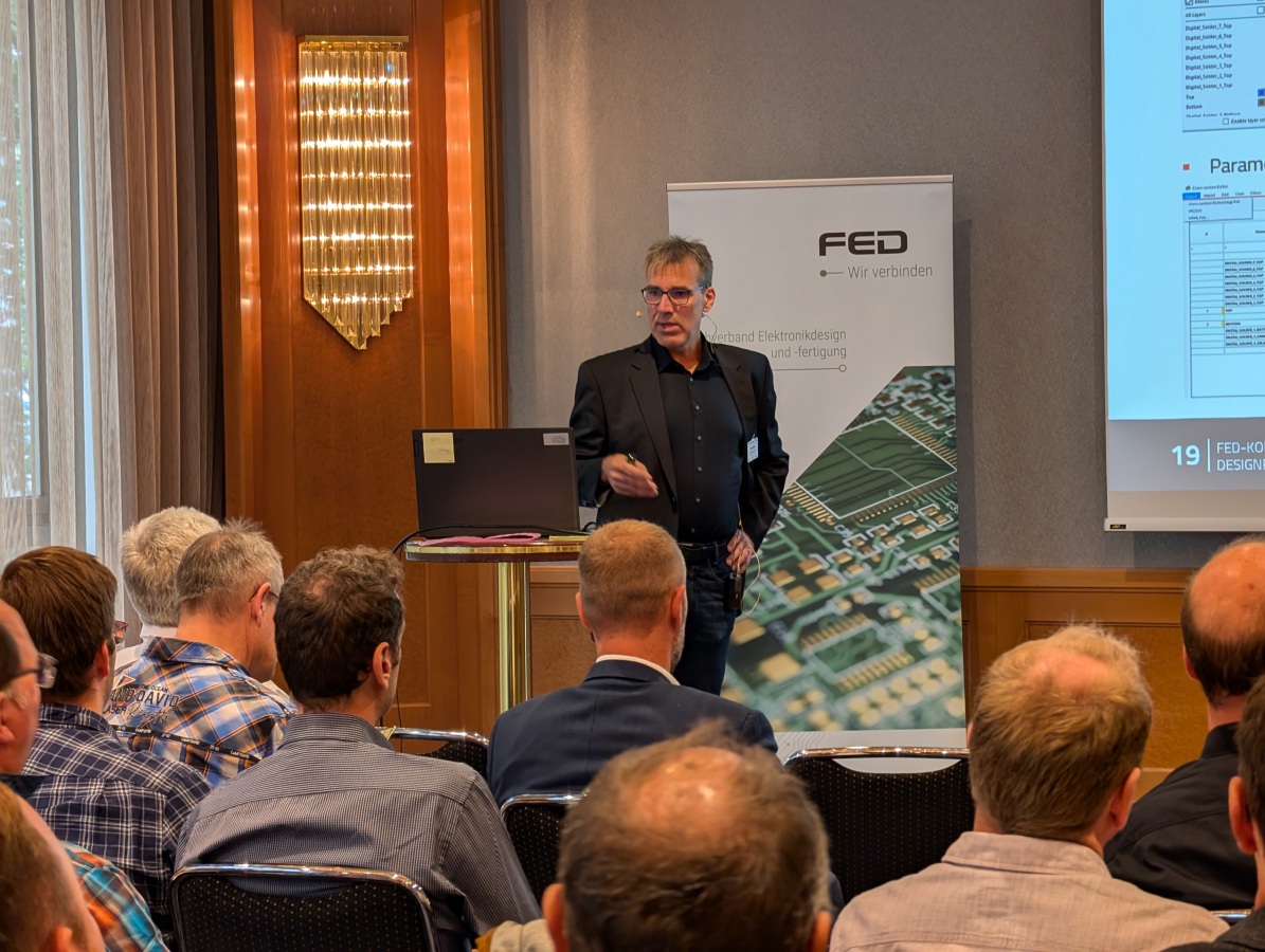 Eröffnet wurde die Konferenz vom FED-Vorstandsvorsitzenden Dieter Müller. Die Zahl der Anmeldungen spreche eine deutliche Sprache, welche Wichtigkeit der Veranstaltung zukommt. Als Strategieziele des FED für das kommende Jahr gab Dieter Müller die verstärkte Verbandsarbeit und den Ausbau des Seminarangebots, auch ‚On- Demand', an. Vor allem betonte er die Kraft der Kollaboration – so sei der Arbeitskreis 3D-Elektronik der Plattform J.A.M.E.S. für 3D-Printing-Elecronics beigetreten, und zusammen mit dem amerikanischen Verband IPC bereite der FED das neue englischsprachige Konferenzformat PEDC in Wien vor (29./30. Januar 2025).