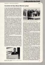 Auf dem Gelände des ehemaligen Flughafens Riem im Osten der bayrischen Landeshauptstadt entsteht gegenwärtig das neue Münchener Messegelände, das ab Anfang 1998 den bisherigen Messestandort auf der Theresienhöhe in der Innenstadt ablösen soll. Seit dem 1. Spatenstich Anfang September 1994 sind die Arbeiten für das 2,3 Mrd. DM-Projekt - das größte Bauvorhaben in München seit den Olympischen Spielen 1972 - zügig voran- geschritten, ...