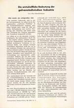 Die wirtschaflliche Bedeutung der galvanotechnischen Industrie wird anhand von Zahlen belegt. Der Gesamtumsatz der deutschen Lieferfirmen für Galvanotechnik betrug im Jahre 1950 rund 26,5 Millionen DM. Bis zum Jahre 1964 stieg er auf 180 Millionen DM. In den letzten 10 Jahren (1955-1964) betrug der Gesamtumsatz 1,3 Milliarden DM. An Einrichtungen und Geräten für die Galvanotechnik wurden aus Deutschland nach dem Ausland im Jahre 1964 für ...