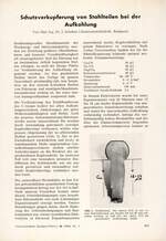 Die Schufzverkupferung von Stahlteilen bei der Aufkohlung ist Gegenstand dieser Betrachtung. Bei Stahlbolzen wurde z. B. ein Teil des Bolzens mit einem Schutzüberzug aus Kupfer versehen, so daß bei der Aufkohlung dieses Teiles nur die durch Kupfer unbedeckten Stellen die gewünschte Aufkohlung erhalten. Interessant bei dieser Arbeit sind auch Tabellen aus Versuchen mit Kupferbädern bei verschiedenen Badtemperaturen, verändertem Gehalt an ...