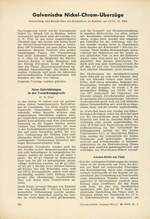 Blickpunkt... Auto-Zierteile. Zahlreiche Veröffentlichungen in aller Welt zum Thema Vernickeln-Verchromen einerseits und rostfreier Stahl andererseits lassen häufig eine fundierte Sachkenntnis vermissen. Der Technische Ausschuß der Fachabteilung Galvanotechnik im Zentralverband der Elektrotechnischen Industrie in Deutschland hat sich daher zu einer Stellungnahme veranlaßt gesehen, welche die Probleme der Korossion, Be- und Verarbeitung ...