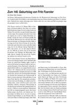 Im Februar 2006 gedachten die deutschen Chemiker der 140. Wiederkehr des Geburtstags von Fritz Foerster. Er gehört neben Erich Müller zu den bedeutenden deutschen Elektrochemikern des frühen 20. Jahrhunderts. Anlässlich des runden Jahrestags seiner Geburt sollen hier sein Leben und Werk am geistigen Auge des geneigten Lesers vorüberziehen.