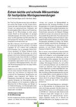 Der Trend zur Miniaturisierung kann nicht übersehen werden. Der Einsatz von sehr kleinen elektronischen und opto-elektronischen Bauteilen in einer Vielzahl von unterschiedlichen Verbrauchs- und Investitionsgütern führt im Bereich der Produktions­anlagen für die Mikromontage zu einem zunehmenden Bedarf an Servoantrieben mit geringen Außenabmessungen. Die bisher entwickelte Generation von Mikrogetrieben und Mikroantrieben war nicht ...