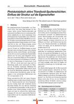 Einleitung Die photokatalytischen Eigenschaften von Titan- dioxid (TiO2) sind schon lange bekannt. Seit einigen Jahren werden Titandioxidschichten auf unterschiedliche Materialien mit verschiedenen Me- thoden aufgebracht, um durch Ausnutzung dieser photokatalytischen Eigenschaften einen Selbstreinigungseffekt der beschichteten Oberflächen zu erzielen. So gibt es inzwischen beispielsweise als selbstreinigend beworbene Fensterscheiben ...