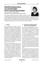Das Laserpulverauftragschweißen ist heute ein Verfahren, mit dem sehr schnell und flexibel Beschichtungen und Reparaturen an Bauteilen aus Titan, Aluminium oder auch Magnesium vorgenommen werden können. Zur Verbesserung der Verschleißfestigkeit stehen eine Reihe von Werkstoffen zur Verfügung, die mit dem Laserstrahl an besonders beanspruchten Stellen auf- oder eingebracht werden können. Darüber hinaus wurden Strategien und ...