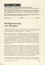 Die gegenwärtig angespannte Lage auf dem Nickelmarkt hat viele Überlegungen darüber ausgelöst, wie man Nickel einsparen und Nickelverluste vermeiden kann. Bereits im Jahre 1968 erschien in der vorliegenden Zeitschrift eine Arbeit von Robert Pinner, B. Sc., und Günter Fischer, Ing., mit dem Titel „Die Rückgewinnung von Metallen in Verbindung mit dem Lancy-Verfahren“ („Galvanotechnik“ 59 (1968), Nr. 5, Seiten 430 bis 436). Darin ...