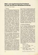1. Einleitung: Bei der elektrolytischen Metallabscheidung stehen die automatische Messung, Kontrolle und Regeneration der Badbestandteile besonders in letzter Zeit im Blickpunkt des Interesses. Bei den umfassenden Arbeiten, die an verschiedenen Stellen durchgeführt wurden, hat sich herausgestellt, daß ein besonderes Interesse an der Kontrolle des pH-Wertes sowie der Anionenkonzentration besteht. Die Konzentration an Kationen, bei denen es ...