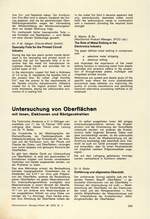Die Technische Akademie e. V. in Eßlingen veranstaltete vom 11. bis 13. Februar 1970 einen Lehrgang über dieses Thema unter Leitung von Dr. H. Seiler. Die Fortschritte in der Metallographie, der Werkstoffkunde, der Festkörperphysik, der Halbleiterforschung, der Kristallzucht, der Katalyse und der Korrosion, kurz, der Physik und Chemie der Grenz- und Oberflächen, verlangen eine immer bessere und genauere Kenntnis der Oberflächen. Es gibt ...