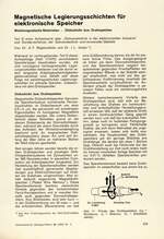 Während in dem Aufsatz in Heft 1/1970 der „Galvanotechnik“ über Magnetische Legierungsschichten für elektronische Speicher diejenigen Speichertypen beschrieben wurden. die sich vorwiegend hartmagnetischer Legierungsschichten bedienen (mit langsamen Arbeitsgeschwindigkeiten), werden in der vorliegenden Arbeit die weichmagnetischen Legierungsschichten für schnelle Speicher behandelt, bevorzugt Dickschicht bzw. Drahtspeicher. Rezepturen ...