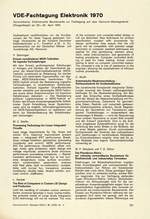 Generalthema: Elektronische Bauelemente zur Fachtagung auf dem Hannover-Messegelände (Kongreßsaal) am 28.-30. April 1970 Nachstehend veröffentlichen wir die Kurzfassungen der für diese Tagung geplanten Vorträge. Veranstalter ist der Verband Deutscher Elektrotechniker e. V., Frankfurt a. M., in Zusammenarbeit mit der Deutschen Messe- und Ausstellungs AG, Hannover. P. Salminger: Einsatz verschiedener MOS-Techniken für logische ...