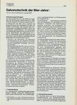 Die Galvanotechnik ist in der DDR als Teilgebiet der technischen Elektrochemie in elektrotechnologische Prozesse eingeordnet [1]. Im Blickpunkt der 90er-Jahre orientiert die Entwicklung auf den sparsamen Einsatz von Stoffen und Energie, das Ablösen aller konventionellen Einwegtechnologien durch geschlossene Stoffkreisläufe, auf Spülwasser und Wertstoffrückgewinnung sowie auf minimierte ...