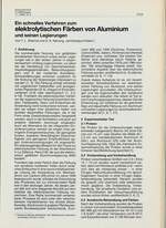 Die kommerzielle Nutzung von gefärbtem anodisiertem Aluminium sowie seiner Legierungen hat in den letzten Jahren in beachtenswertem Umfang zugenommen, vor allem bei der Herstellung von Geschenkartikeln, Haushaltsgegenständen, Beleuchtungskörpern und in der modernen Architektur. Schwarzfärbungen scheinen zusätzlich für die Nutzung der Solarenergie interessant zu werden [1, 2]. Die Färbung erfolgt entweder mit ...