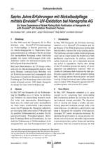 Sechs Jahre Erfahrungen mit Nickelbadpflege mittels Enviolet®-UV-Oxidation bei Hansgrohe AG // Six Years Experience of Nickel Plating Bath Purification at Hansgrohe AG with Enviolet®-UV-Oxidation Treatment Process
