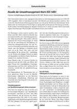 Fresenius Umweltjahrestagung diskutierte Novelle der ISO 14001: Revision kommt, Herausforderungen bleiben Viele Unternehmen haben in den vergangenen fünf Jahren ein Umweltmanagementsystem nach DIN ISO 14001 eingeführt. Allein in Deutschland sind über 3800 Betriebe nach diesem Standard zertifiziert. Nun warten die Umweltverantwortlichen gespannt darauf, was sich mit der Revision der internationalen Norm ändern wird. Der Entwurf ...