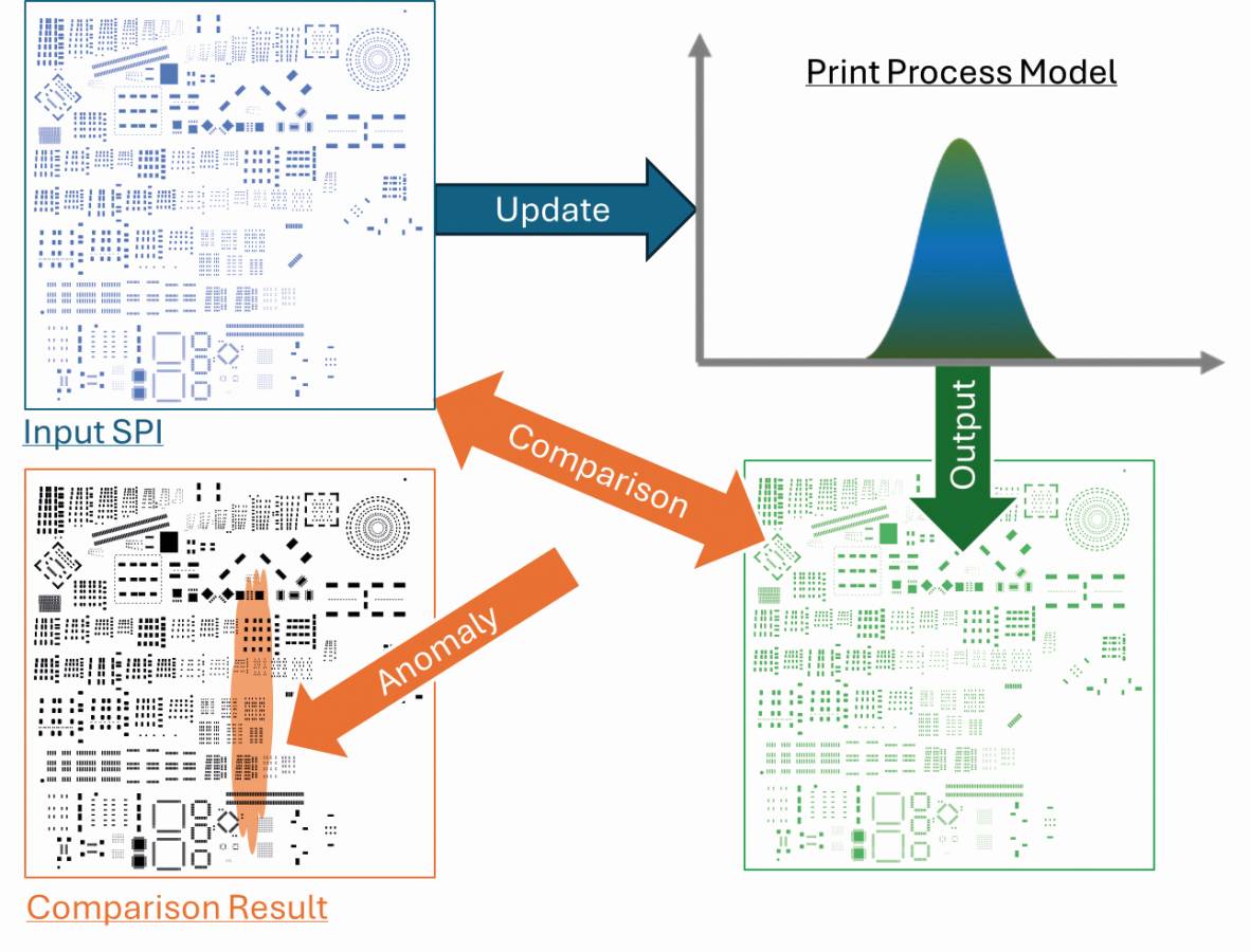 Koh Young aplica este concepto al servidor KSMART y a la infraestructura KPO. Los datos relativos a las líneas permanecen en el servidor KSMART, que puede transmitirlos a otras aplicaciones o IAs de nivel superior mediante APIs (Application Programmable Interfaces). Dichas aplicaciones pueden ser IAs locales que trabajan cerca del proceso debido a los aspectos de tiempo real. Un ejemplo es la IA de la impresora KPO, que -integrada en la SPI- asume el control completo del proceso de impresión de pasta de soldadura. Estas IA también comparten su información y resultados de optimización a través del servidor KSMART, que se convierte así en el intermediario de datos del proceso para la IA de producción.