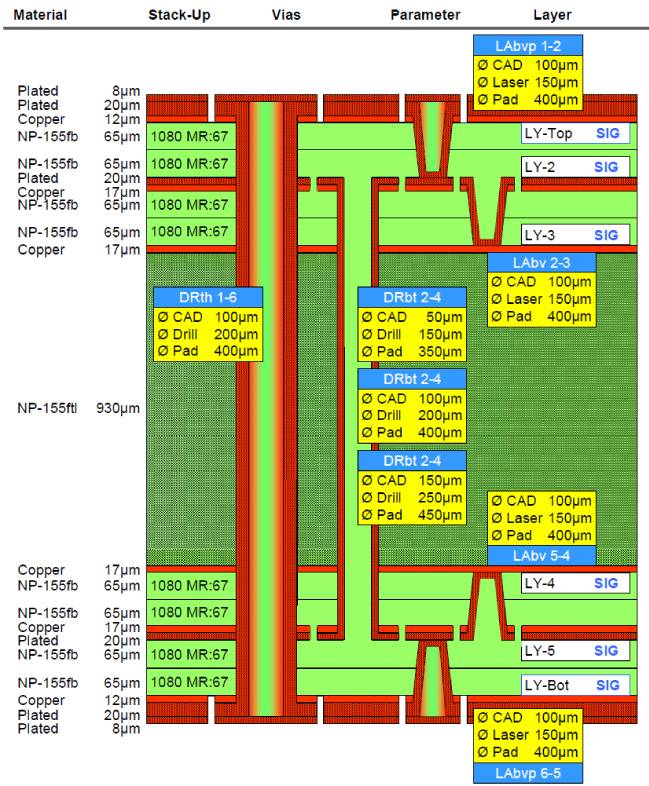 Abb. 1: Lagenaufbau der verwendeten Leiterplatten mit sechs Lagen [7]