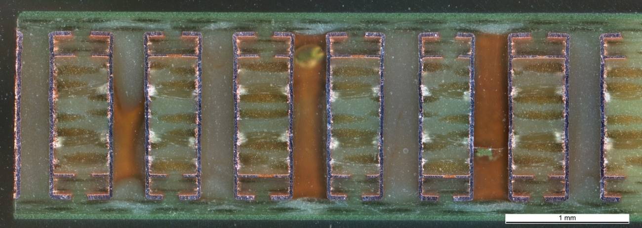 Im Rahmen eines Gemeinschaftsprojektes vom Fraunhofer-Institut für Silziumtechnologie (ISIT) und dem Institut für Analogtechnik und Sensorik (AGT) der Technischen Hochschule Mannheim (THMA) wurden Epoxidharzstrukturen in passiv verfüllten Buried Vias in mehrlagigen Leiterplatten (Multilayer) detailliert untersucht. Ziel der Untersuchungen ist es zu ermitteln, ob es mit einer Computertomografie (CT-Röntgenanalyse) möglich ist, gezielt und zuverlässig Fehler in Epoxidharzstrukturen von passiv verfüllten Buried Vias zu detektieren und somit eine hundertprozentige Prüfung der Buried Vias zu ermöglichen. Die gefundenen Fehler in den Harzstrukturen der Buried Vias wurden im Querschliff gezielt analysiert und zur Verifizierung der Fehler Untersuchungen im Lichtmikroskop (LM) und im Rasterelektronenmikroskop (REM) durchgeführt. Mithilfe verschiedener Teststrukturen in den Leiterplatten wurden kausale Zusammenhänge und Ursachen für die Entstehung der Fehlstrukturen im Epoxidharz der passiv verfüllten Buried Vias identifiziert, so dass daraus Empfehlungen für den Lagenaufbau, das Layout sowie die verwendeten Prepregs abgeleitet wurden. Für diese Untersuchungen wurden Leiterplatten eingesetzt, die unter industriellen Bedingungen von den Unternehmen KSG, ILFA und WE hergestellt wurden. Für die Herstellung der Multilayer wurden Materialien jeweils aus einer Charge vom Unternehmen Technolam bereitgestellt.