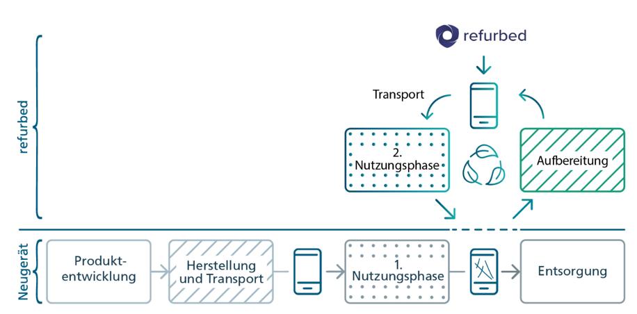 Abb.1: Nutzungsphasen bei neuen und refurbed Smartphones