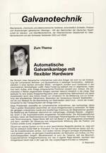 Der Wunsch vieler Galvanischer Unternehmen wäre eine Anlage, die nicht nur die Ansteuerung der vorhandenen Aktivbad- und Spülpositionen in beliebiger Kombination - selbstverständlich in einer fachlich sinnvollen Weise - ermöglicht, sondern auch Variationen in den verschiedenen Aktivbadtypen zuläßt. Diese Forderung realisiert man im allgemeinen, indem man beim Aufbau einer Anlage entsprechende Positionen einplant bzw. einbaut. Die ...
