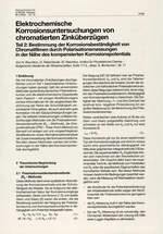 Die mit chromatierten Zinküberzügen durchgeführten und im Teil 1 beschriebenen Untersuchungen haben gezeigt, daß die verwendeten Methoden (potentiodynamischen Polarisations- kurven und die elektrochemische Doppelzelle nach Paatsch - mit einigen Modifizierungen) ...