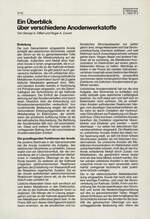 Die zum Galvanisieren eingesetzte Anode schließt den elektrischen Stromkreis, verteilt den Strom an die zu galvanisierenden Teile und beeinflußt die Metallverteilung auf der Kathode. Außerdem wird Metall einer löslichen Anode in Ionen umgewandelt, die in Lösung gehen und die an der Kathode entladenen Ionen ergänzen. Es gibt jedoch auch galvanische Verfahren, die mit unlöslichen Anoden arbeiten, wobei die in ...
