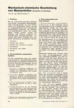 Schleifen, Polieren und Entgraten von Massenteilen (Schüttgut) erfolgt In Trommeln oder Glocken. Die mechanische Bearbeitung wird ergänzt durch chemische Behandlungsmittel, Schleifkörper, Pollerkugeln usw. Es werden die verschiedenen Systeme für diese Arbeitsweisen besprochen, insbesondere Trommelanlagen unter Verwendung einer Vielzahl von kleineren Trommeln anstelle eines großen Gerätes. Die Arbeitsweisen werden dadurch rationalisiert ...