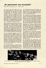 Bericht über eine Konferenz am 10. 4. 1970 in Wien Für den 10. April 1970 hatten die Firmen Bayer, BASF, Marbon und Schering zu einer gut organisierten Konferenz unter dem Motto „So galvanisiert man Kunststoff“ nach Berlin eingeladen. Mehr als 100 Fachleute nahmen an der Tagung teil. Am Vortage wurden die Teilnehmer bei einem Empfang von Herrn Direktor Dr. Heymann (Schering AG) namens der einladenden Firmen begrüßt. Danach fand eine ...