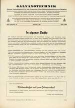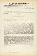 Ausführliche Referate über Vorträge auf Veranstaltungen in den Bezirksgruppen der „Deutschen Gesellschaft für Galvanotechnik“. Abwasserprobleme der galvanischen Industrie und ihre Lösung durch den Ionenaustauscher Österreichische Gesellschaft für Galvanotechnik Gründung der Landesgruppe Oberösterreich in Linz Terminplan der Bezirksgruppen-Veranstaltungen der Deutschen Gesellschaft für ...
