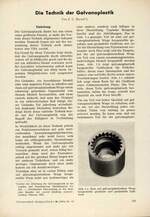 Die moderne deutsche Galvanotechnik hat hinsichtlich Anlagen und Verfahren einen hohen technischen Stand erreicht, der in aller Welt geschätzt und anerkannt wird. Die Galvanisierung von Kunststollen ist heute eines der aktuellsten Themen und es hat den Anschein, daß auch die Galvanoplastik über den Rahmen der üblichen Anwendung hinaus sich weitere Möglichkeiten erschließt, welche nicht allein auf die Herstellung von Teilen beschränkt ...