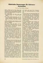 Über elektrotechnische Installationen im Arbeitsbereich der Galvanotechnik erschienen in der „Galvanotechnik“ bereits folgende Arbeiten vom gleichen Autor: Heft 9/1965 über Stell- und Regeleinrichtungen für Galvano-Gleichrichter und in Heft 11/1965 über Schaltanlagen zur Versorgung sämtlicher elektrischer Verbraucher in der Galvanik und eines Automaten. Die vorliegende Arbeit beschäftigt sich mit den elektrischen Steuerungen für ...
