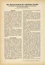 Es wird ein Überblick gegeben zum Einsatz der galvanischen Verfahren im Maschinenbau und in der Elektrotechnik. Im Gegensatz zur Verwendung für die Verschönerung und zum Korrosionsschutz einer Ware ergeben sich viele Einsatzmöglichkeiten für rein technische Zwecke, die hier besprochen werden; Galvanoplastik, dünne metallische Überzüge, Leitfähigkeitsverbesserung, Hartverchromung, Starknickel, Edelmetallüberzüge, anodische Oxydation ...