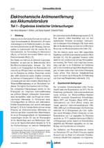 Teil 1 – Ergebnisse kinetischer Untersuchungen Antimon ist ein chemisches Element mit relativ ge- ringer Anwendungsbreite. Bekannt sind z. B. neuere Anwendungen in der Halbleiterindustrie, die robusten Antimonelektroden zur pH-Messung, Antimonzusätze im Letternmetall oder für Anoden für die Galvanotechnik, die Verwendung als Antimonoxid (Sb2O3) in Flammen hemmenden Mitteln oder als Feuerwerkszusatz (Sb2S3) [1]. Der Zusatz von ...