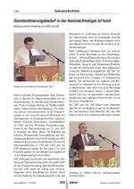 Beitrag zu einem Workshop von DKE und DIN Durch exzellente Forschungsarbeit zählt Deutschland im Bereich der Nanowissenschaften und der Nanotechnologie zu den führenden Industrienatio- nen. Einen wichtigen Beitrag zur Wettbewerbsfähigkeit leisten Normen und Standards. Um weiterhin weltweit Innovationstreiber in der Nanotechnologie zu sein, muss die deutsche Wirtschaft ihre Spitzenposition in Normungsaktivitäten umsetzen, betonte ...
