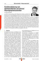 Am MPI für Eisenforschung werden Plasmapolymerschichten sowohl für den Korrosionsschutz und die Haftungsvermittlung als auch für die Einstellung der Benetzbarkeit von Stahlbandoberflächen entwickelt. Die Korrelation von chemischer Zusammensetzung und Morphologie mit den Schichteigenschaften steht dabei im Vordergrund der Untersuchungen. Auf Basis siliziumorganischer Monomere wurden Schichten für verzinkten Stahl ent- wickelt, die an der ...