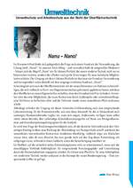 Im Kreuzworträtsel findet sich gelegentlich die Frage nach einem Ausdruck der Verwunderung, die Lösung heißt „Nanu!". In unserem Fach-Alltag – und vermutlich bald als zeitgemäßes Modewort – bürgert sich der Begriff „Nano" ein für kleinste Partikel, die unsere moderne Technik nicht nur zu beherrschen trachten, sondern die offenbar auch große Erwartungen für neue technische Möglichkeiten schüren. Der Umgang mit derart kleinen ...