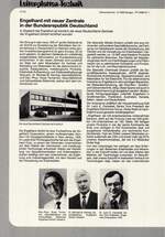 ln Dreieich bei Frankfurt ist kürzlich die neue Deutschland-Zentrale der Engelhard GmbH eröffnet worden Der Einzug in das neue, 500 m2 große Gebäude ist ein Schritt zur Erweiterung der Aktivitäten des Unternehmens in Deutschland im Rahmen eines großen Investitionsprogramms für ganz Europa. So ist auch geplant, im gleichen Gebäude ein vollständig ausgerüstetes Servicelabor zur Kundenbetreuung einzurichten. In der neuen ...