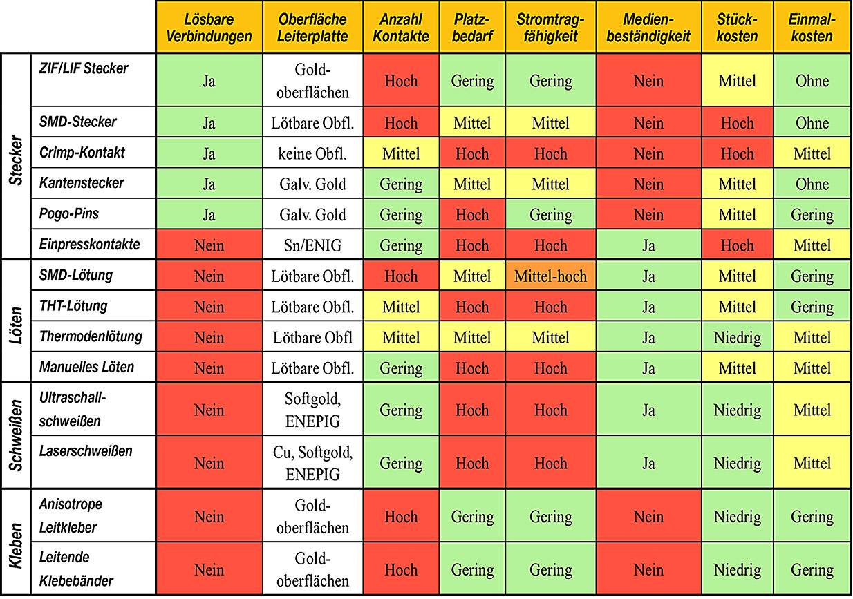 Tab. 1: Übersicht Verbindungstechniken von Leiterplatten